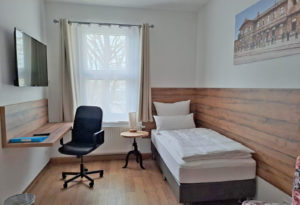 Sie übernachten in Jenas dienstältestem Bahnhofsgebäude. Alle Zimmer sind modern eingerichtet, verfügen über bestmögliche Lärmschutzfenster und befinden sich im ersten Obergeschoss (Zugang über Außentreppe). Alle Zimmer sind Nichtraucher-Zimmer.